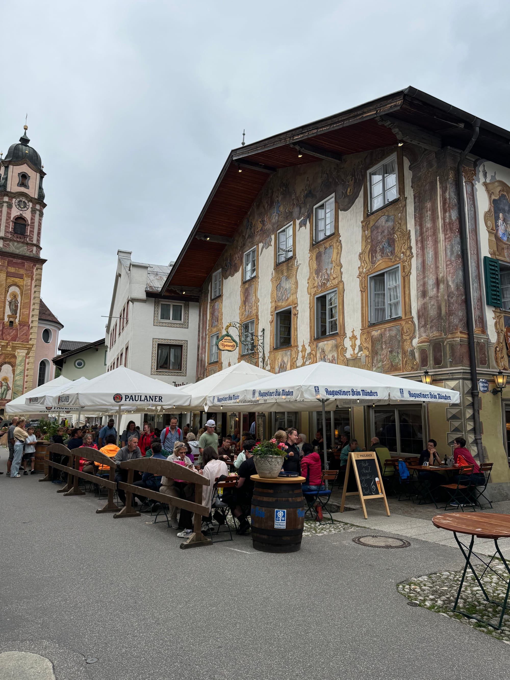 We are in Germany!! Our journey via KLM airlines from Edinburgh to Munich, with a short layover in Amsterdam, was easy and uneventful. We picked up our rental car at the airport and headed towards Mittenwald. We stopped for lunch and a βsmallβ beer in Garmisch-Partenkirchen, a cute town along the way.