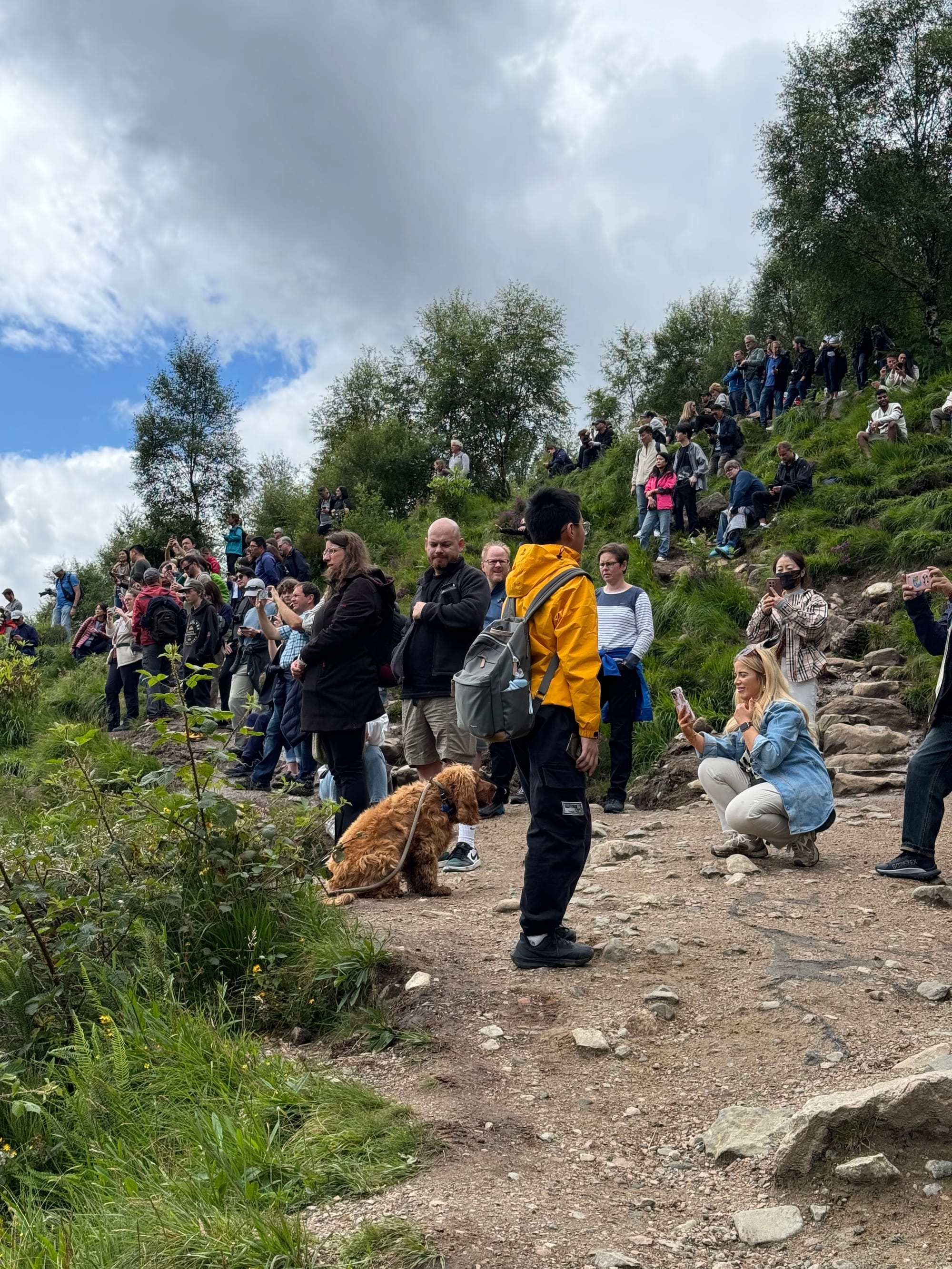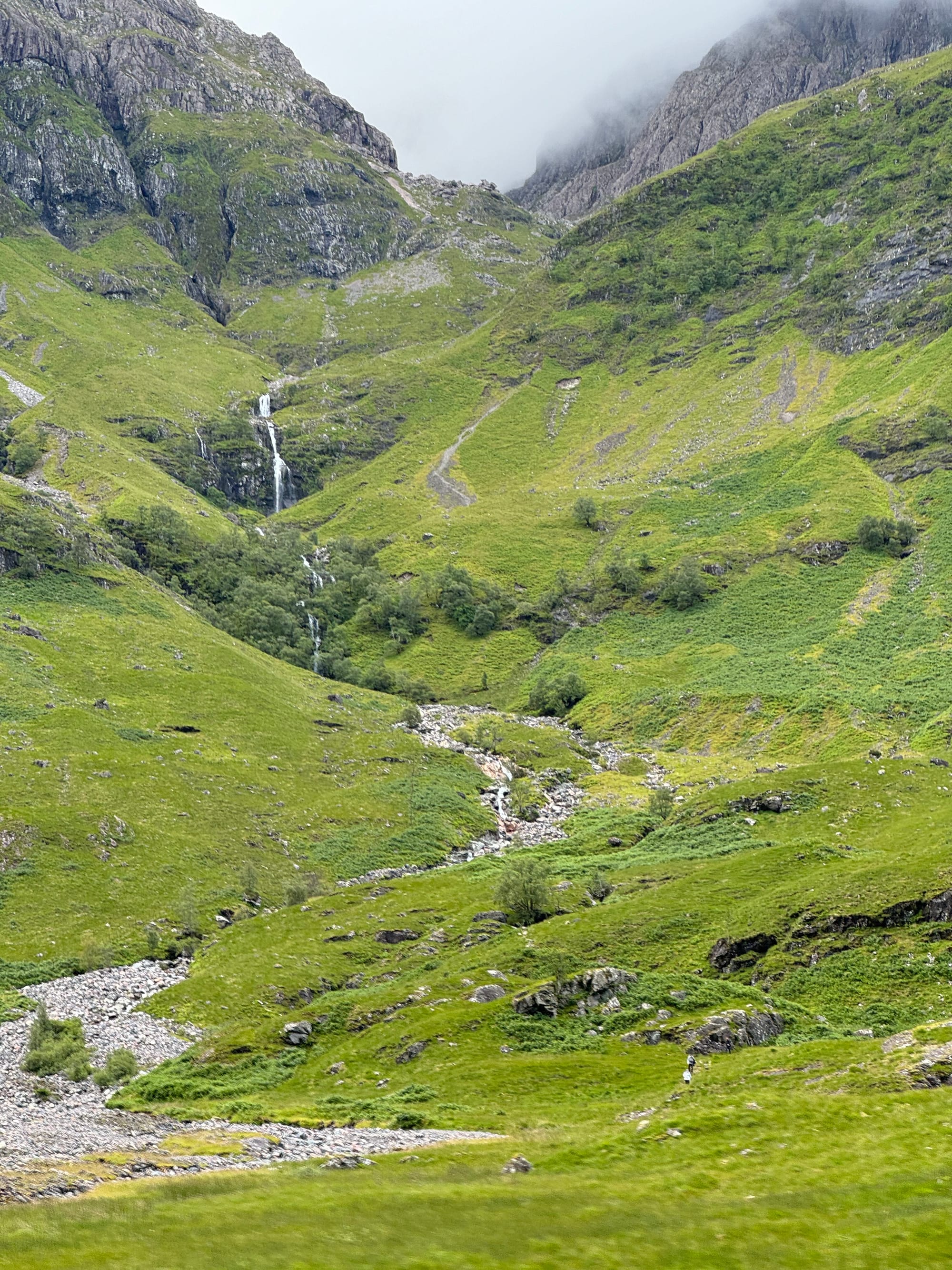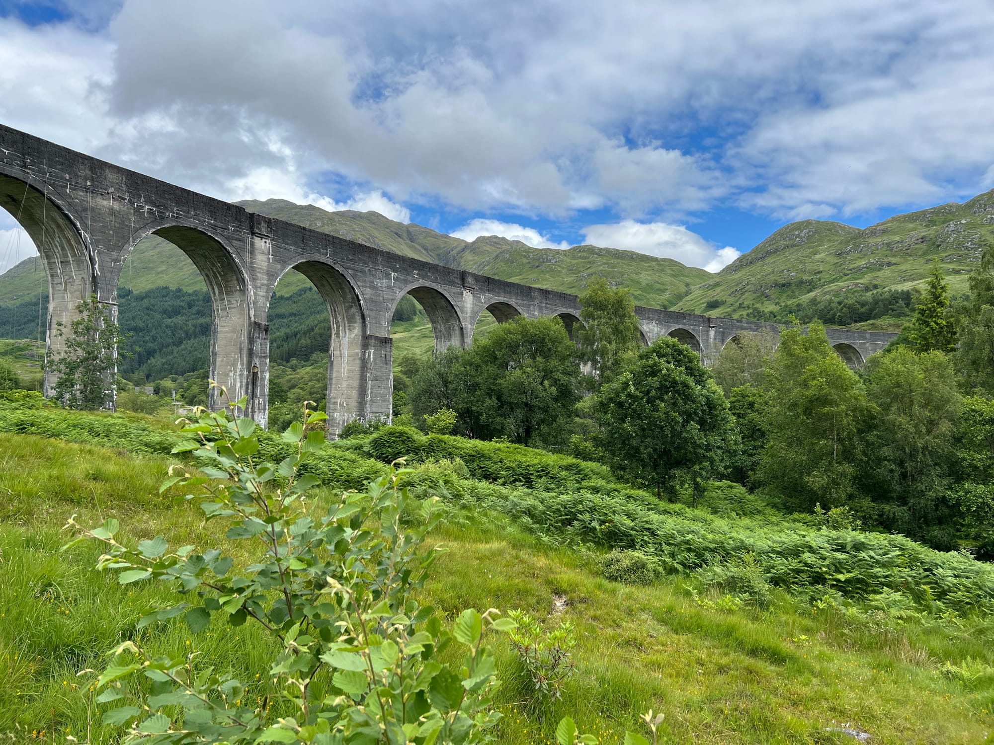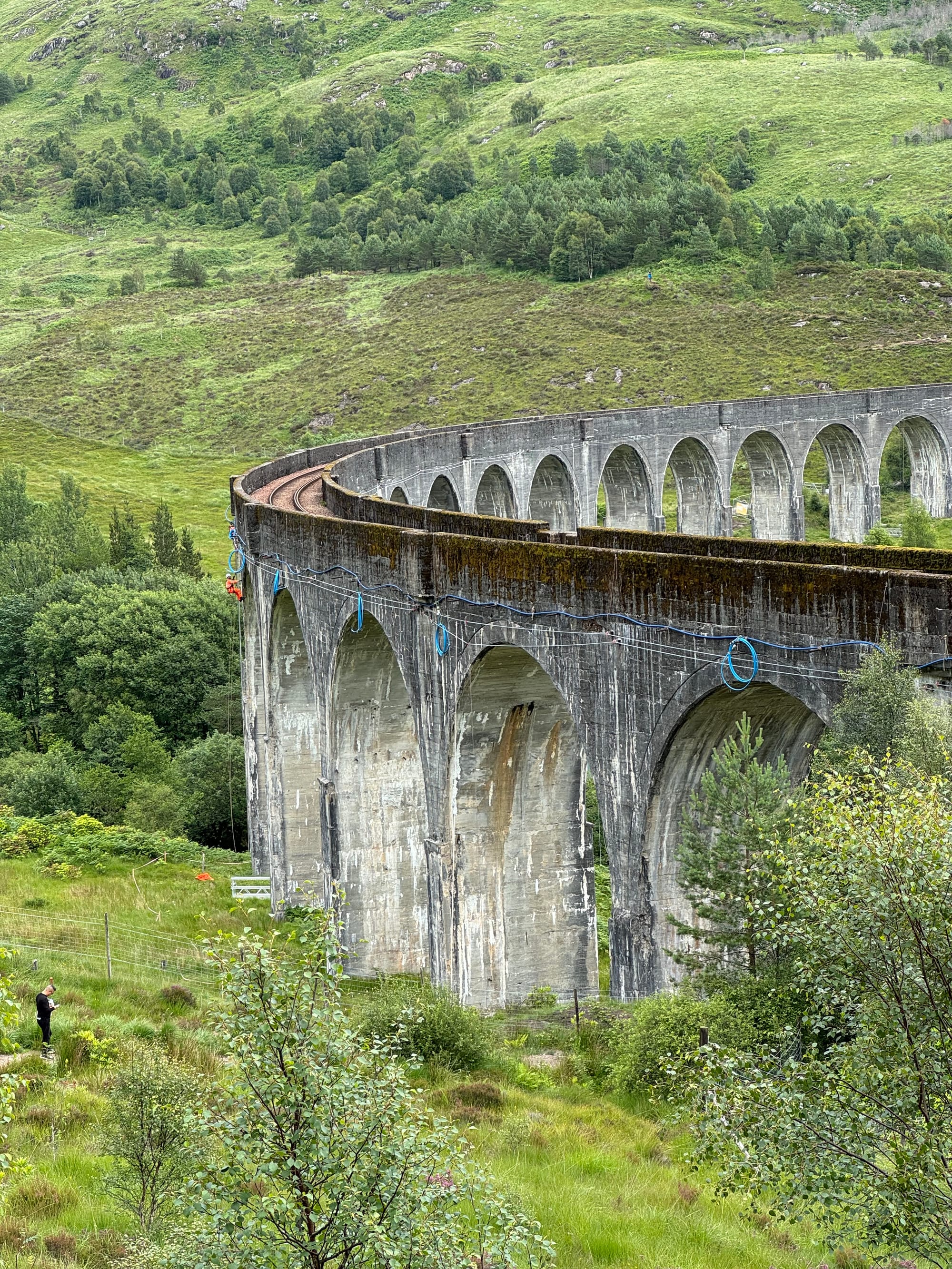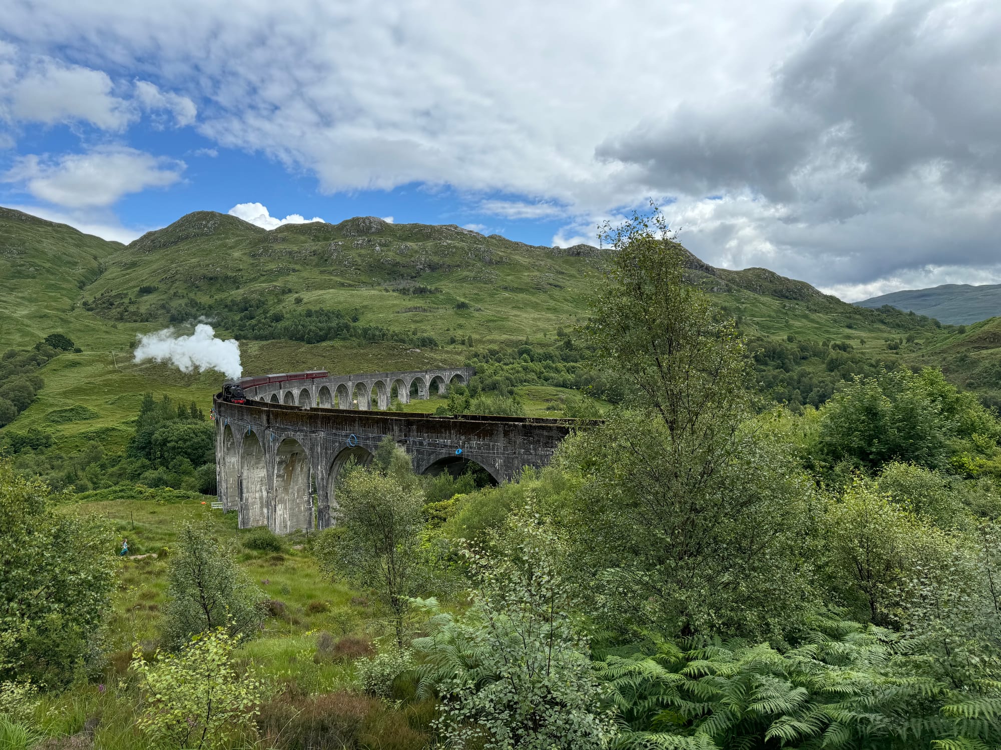 The drive from the airport to our Airbnb in Glensheil was breathtaking and a wonderful introduction to what Scotland provided. We stopped at a few scenic overlooks but we were on a mission. Our goal was to arrive in time to see the Jacobite Steam Train, also known as the Hogwarts Train from Harry Potter, pass over the Glenfinnan viaduct. It was a race! We could see the train tracks next to the road, watching for the train to pass us, and hoping we didn’t miss it. We were not alone in this quest as we arrived at the “spot” joined with several other tourists up on the hill ready to catch their picture. Was it worth it? We would say “yes”.