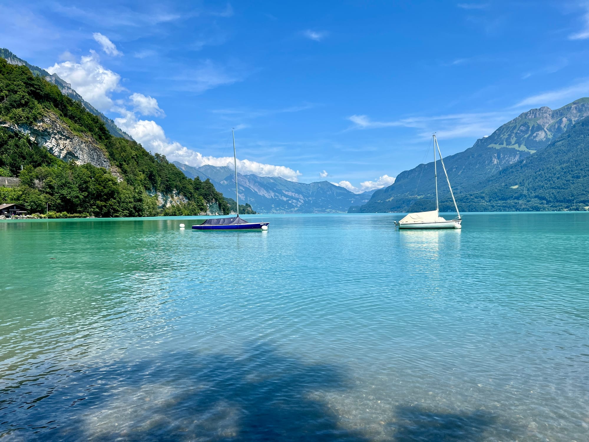 After we said farewell to our new friend from Thun we walked a bit further to take in views of Lake Brienz. We arrived to find a small marina and a small pebble beach. The Swiss agreed that it was really hot and many of them were cooling off in the crystal clear waters, several with their dogs. We sat there for a while, took in the amazing views and enjoyed the cool breezes. We really have to get better about packing our swimsuits on these little outings.