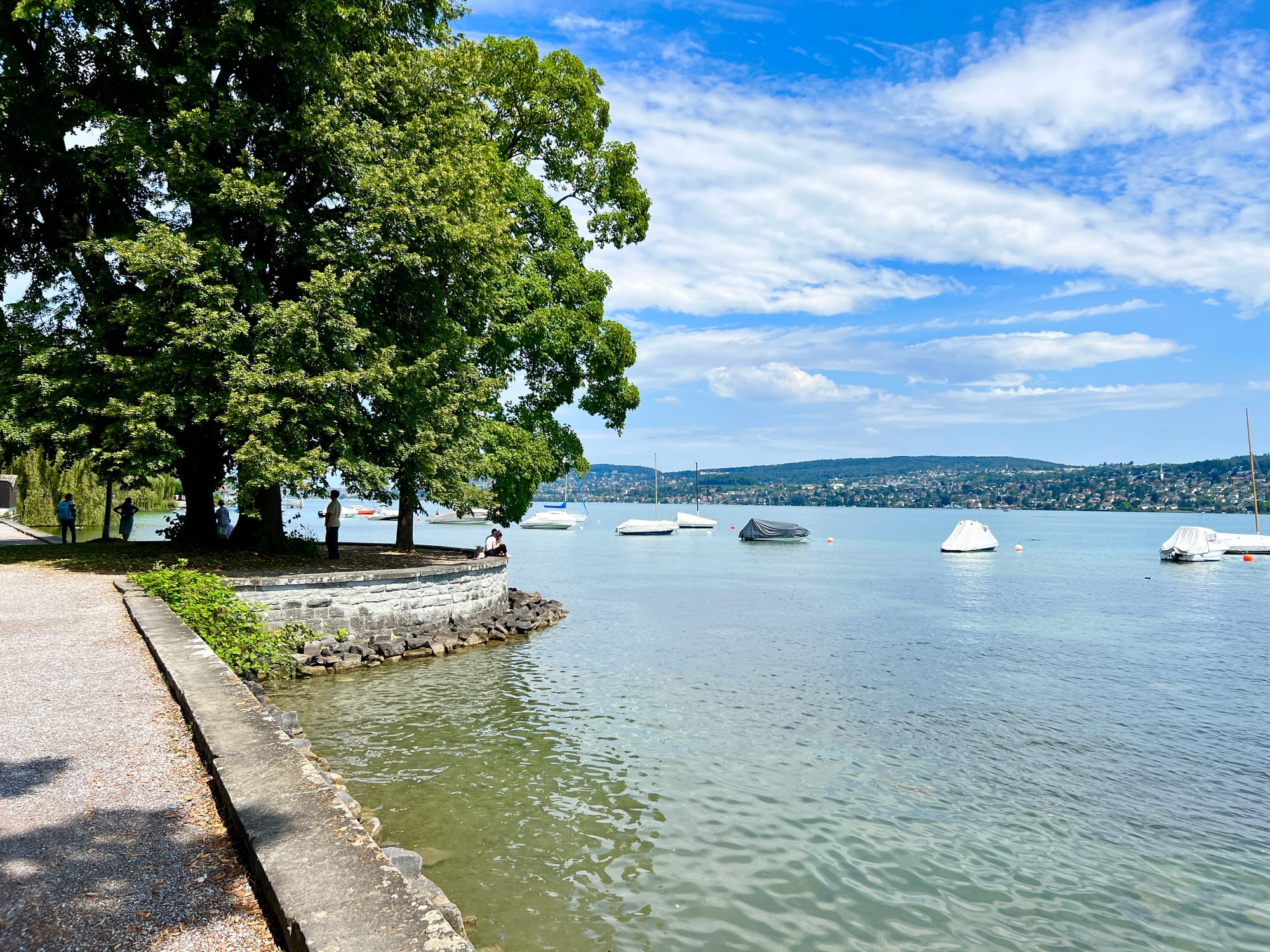 After the café / shop, we decided to walk a couple of blocks to take in the views of Lake Zurich which was beautiful and peaceful. Many Swiss were out enjoying the lake on their sailboats and soaking up the warm weather.